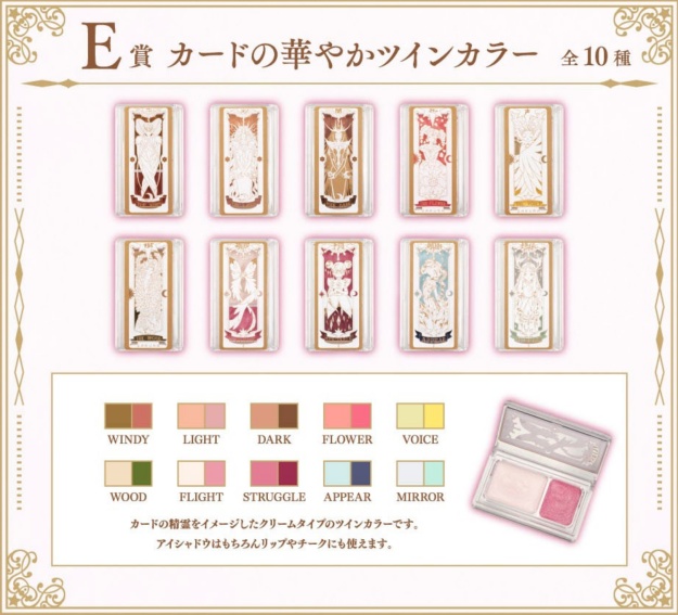 B賞是「封印解除彩妝盤」,這次的彩妝盤是以小冊子為設計概念,翻開封印解除的那面就會看到彩妝組,有種讓小櫻封印解除變美的感覺~裡面有6色眼影和2款腮紅,旁邊還有附眼影棒和腮紅刷,超級一應俱全!而且這次的顏色正好能迎接秋天~