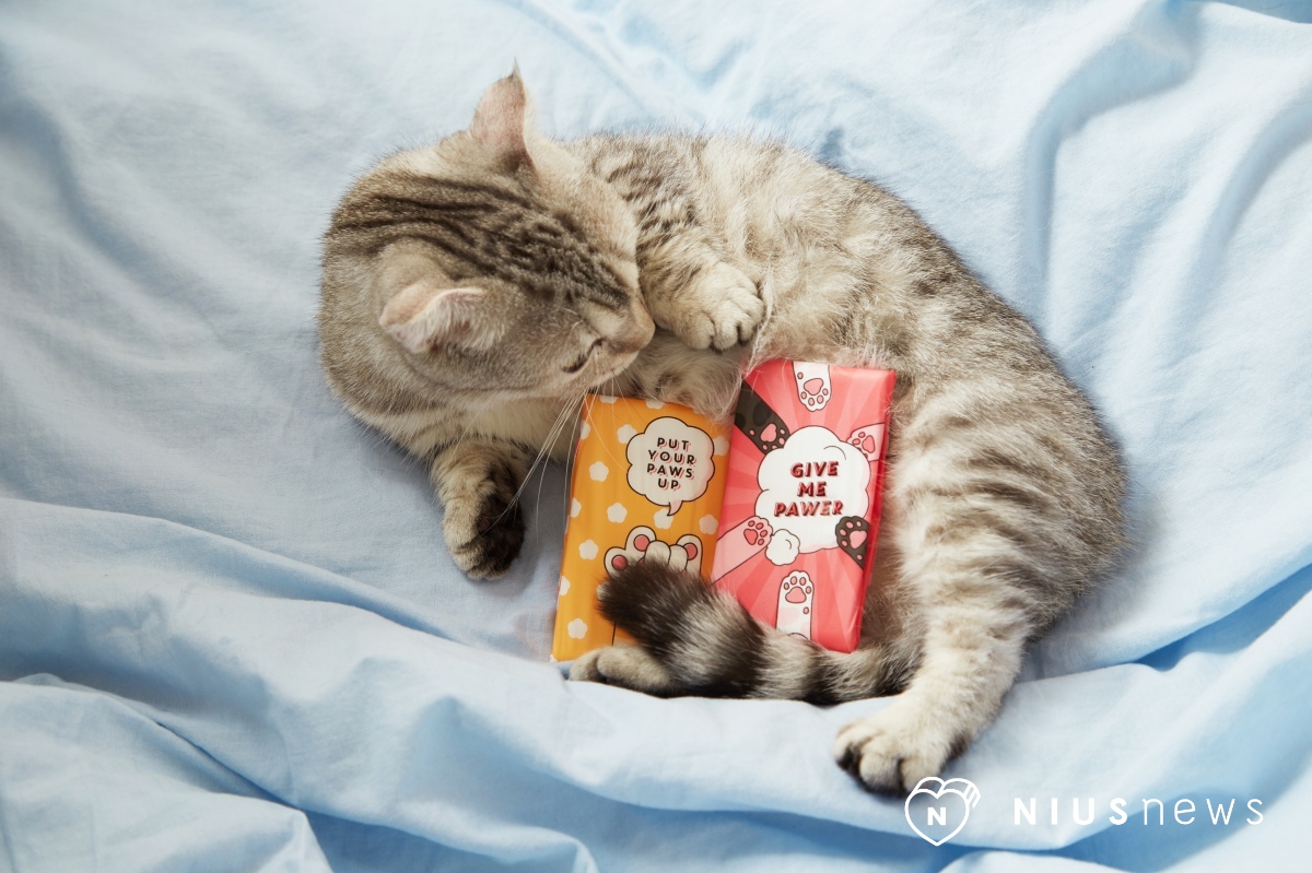 Kotex喵掌包系列共推出兩種長度:日用款的24cm和夜用款的28cm,兩款包裝各有三種不同的配色圖案, 一字排開超可愛,整個超欠收!不管是完整包裝還是單片棉片包裝,都有滿滿的貓掌圖案, 繽紛的色彩讓人移不開眼,討論度百分百,完全吸引住女孩們的目光!(看著包裝上的粉嫩肉球,就忍不住想捏XD)