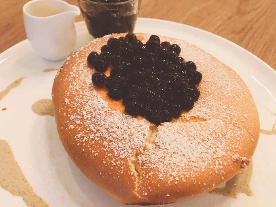 甜點重頭戲就是每日限量的「鐵觀音珍奶瓦帕」啦~petit doux.微兜一直以來就是以瓦帕廣受人知。這款以馬斯卡彭起司與麻糬的熱餡,搭上超Q彈的珍珠,淋上鐵觀音茶香的療癒醬料,令人吞口水的爆漿、不甜膩的口感,要一人完食整塊也沒問題!