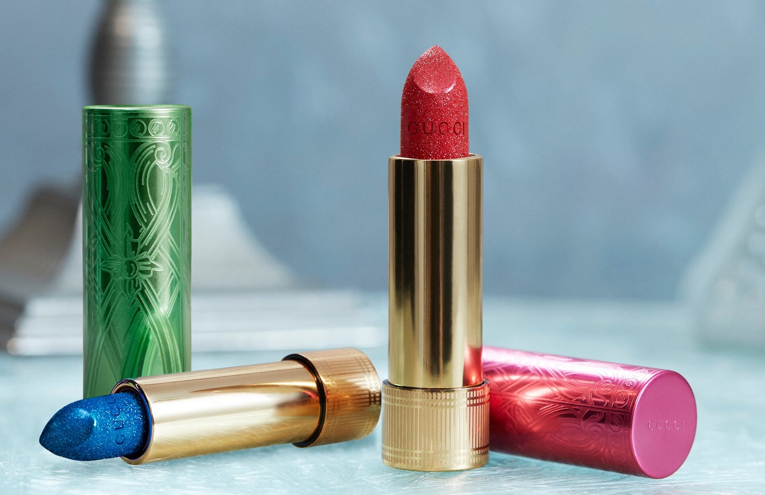 推出全新假日限量版Rouge à Lèvres Lunaison炫閃系列唇膏,25色號Goldie Red(米開理紅)是Alessandro Michele親自挑選的經典紅色,而710Fay Turquoise(沙弗萊綠)則呈現別具一格、帶著閃耀藍的唇色。奶油般柔順質地,搭配三種不同類型的亮粉,限量版還在原本包裝上飾以電鍍彩色塗層,其中25色號Goldie Red為桃紅色外蓋,而710 Fay Turquoise則為綠色。