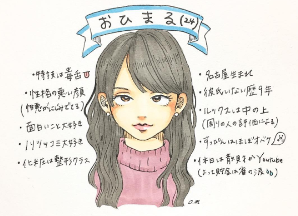 這位年輕OL在她Instagram上的自述是:單身九年連朋友都擔心的超級干物女,特長是毒舌的吐槽;稍微覺得比別人得意一點的地方是會畫插畫,所以才開始這個插畫分享的想法,希望以日記的形式每日更新一則。