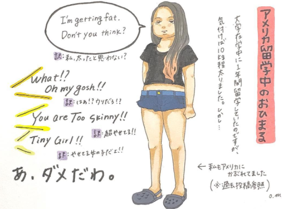 當美國人說你很瘦時,就跟你久久回一次阿嬤家,阿嬤說「乖孫啊,你太瘦了多吃一點」同樣道理!這樣你有懂妞編輯的意思了嗎?(美國人跟阿嬤一樣,標準都好寬啦嗚嗚嗚)