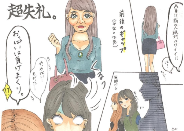 看到背影很正的女生,所以想要超前確認一下正面的顏值,結果看完後發現......嗯嗯嗯果然世界上也是有所謂「背殺」啊!(嗚嗚嗚嗚怎麼有點毒啦)