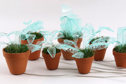 咦,有發現這些盆栽跟一般盆栽哪裡不一樣嗎?透明的葉子實在好特別,難道這是新品種植栽嗎?