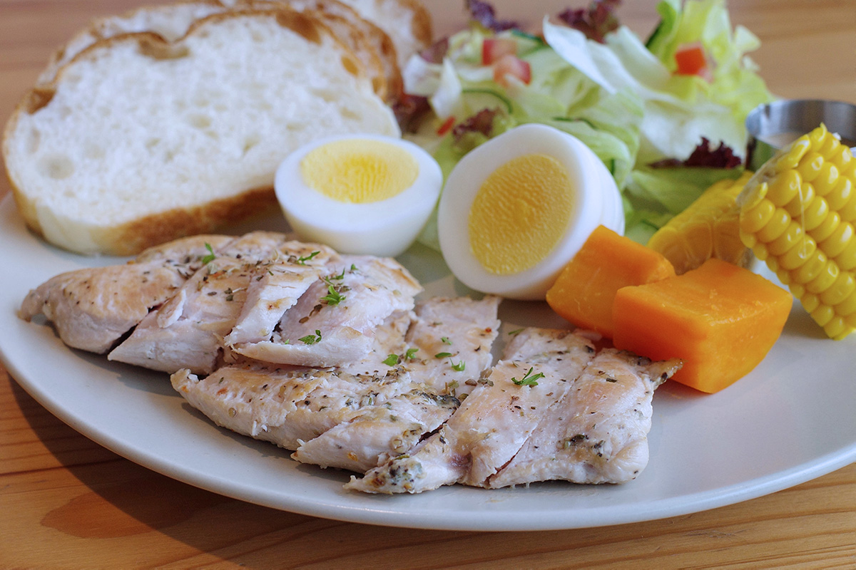雖然一日之計在於晨,但肯定也有不少人早上容易沒食慾,小哉日日的這份「雞肉套餐」既簡單又開胃,使用自家醃漬雞胸肉並撒上些許香料提味,肉質軟嫩不柴入口即化,簡單地調味反倒讓雞胸肉的自然鮮甜更加突出,而一旁的生菜沙拉也是不容小覷,多由店家自己栽種,早上吃上這一盤既清爽又飽足!