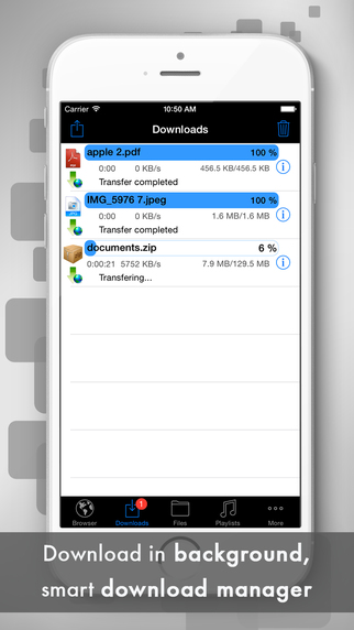 以瀏覽器方式操作的下載管理員,可對各種檔案類型進行背景下載、開啟及儲存。支援最新的iOS 9、3D Touch,各種文字、圖像檔也可以直接觀看,不需要開啟其他App或回到電腦上操作唷!