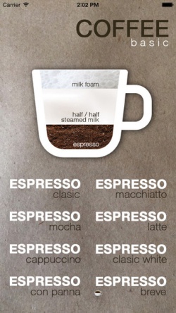 《Coffee basic》讓泡咖啡不再是一件難事!內含多種咖啡種類,點選後App會告訴你每種咖啡的牛奶和奶泡比例各是多少,只要按照它的步驟你也可以輕鬆變咖啡達人喔~
