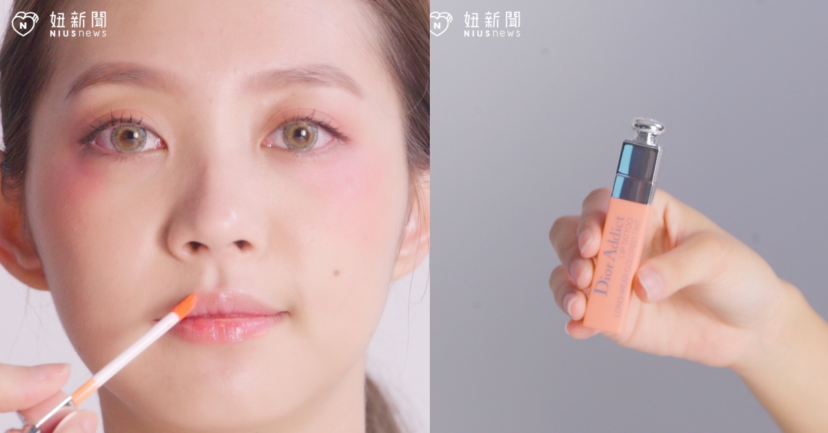 最後,使用染唇露從唇中由內而外暈染雙唇。