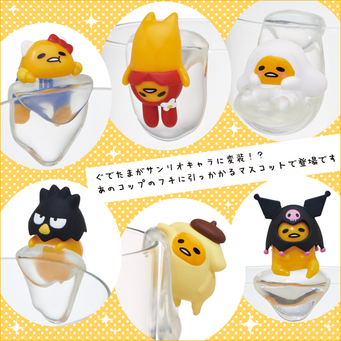 Photo source: ぐでたま×サンリオキャラクター コップのふちマスコットセット -rakuten, コップのフチ子×ぐでたま☆ぐでたまフチマスコットの写真 -otoriyose21, ぐでたま&サンリオキャラクター フチマスコット -sanrio