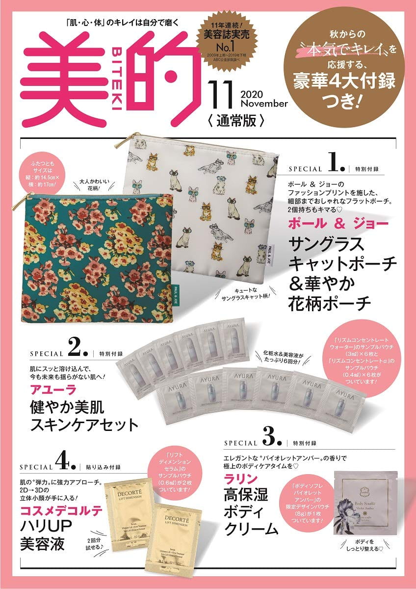 雖然台灣疫情趨緩但口罩仍是日常必備,《美的BITEKI》本月將秋季彩妝重點放在眼妝上,像是眼線畫法、不脫妝的睫毛膏,即便戴口罩看不到臉龐也能魅力滿點!附錄贈送「PAUL&JOE」收納包2組、「AYURA」化粧水&美容液試用組,以及「Laline JAPAN」乳液試用包,實在有夠豐富!