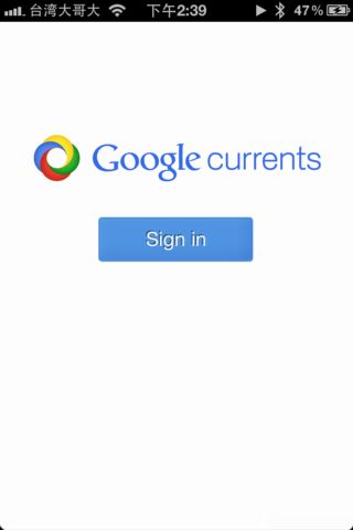 首先,當你要開始使用Google Currents時,毫無疑問的就是以Gmail帳號登入即可,不用申請其他帳號,是個小優點。