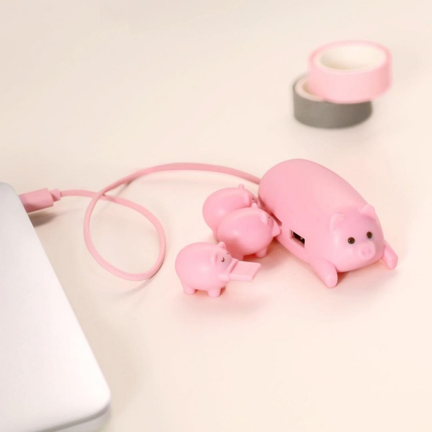 可愛少女粉紅豬這次相關商品比較多是文具和居家類,像是售價1000韓幣的粉紅豬貼紙,售價3000韓幣的日記本,真的是越看越討喜~另外呼聲最高的就是豬媽媽和三隻小豬的三格USB充電轉換器,不用的時候豬小孩還可以到豬媽媽懷裡,除此之外,3C周邊還有「充電線」和「豬豬咬咬傳輸線」!