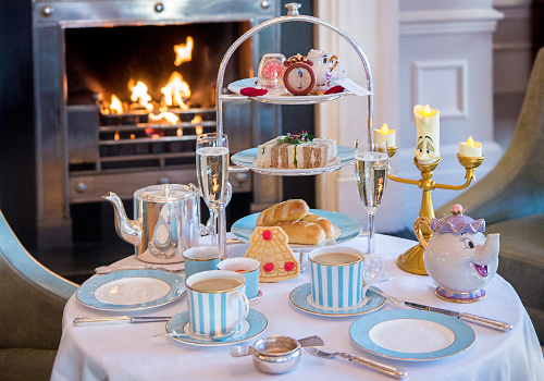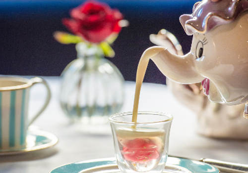 直接取自主題曲〈Tale as Old as Time〉的下午茶,有英國經典的三層糕點,還有跟電影一模模、一樣樣的茶壺太太本尊的茶壺,配上Tiffany藍色的杯盤,整組放在眼前,簡直太夢幻!
