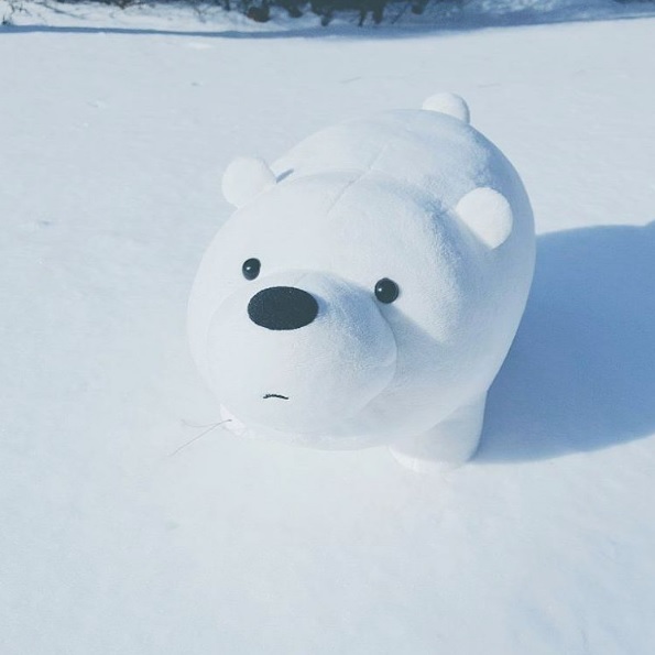 Ice Bear的娃娃擺在雪地上,大家看得出來這是娃娃還是雪人嗎?