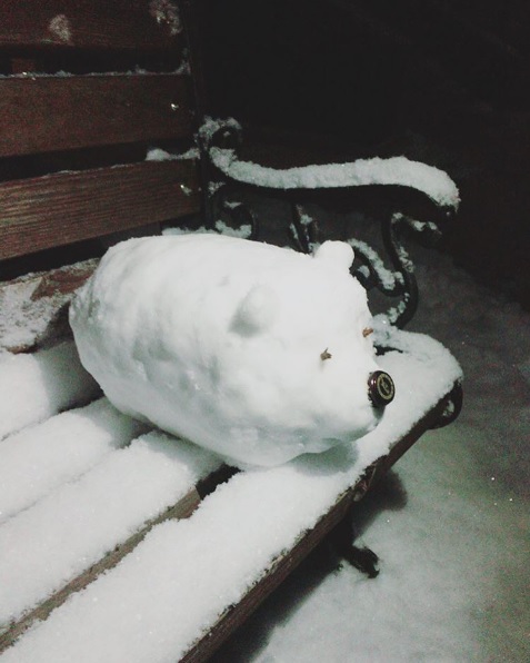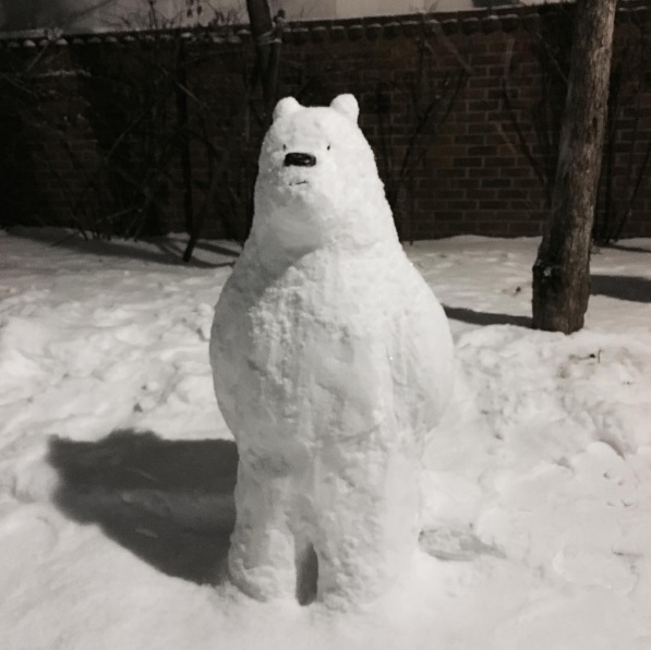 又或是你真的沒有堆雪人天分,或是不想「凍」手,也可以直接在雪地上畫隻Ice Bear跟一下流行哦~(偷吃步)大家如果冬天有要去會下雪的國家玩,可以跟一下韓國最新流行,堆一隻Ice Bear哦~