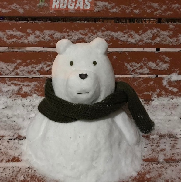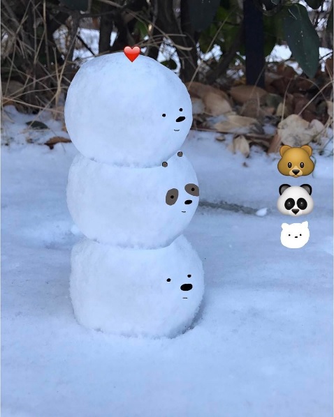 曾幾何時,冬天的雪人代表就是「雪寶」,近日雪寶竟然人氣下滑,韓國開始流行堆這隻Ice Bear,聽名字就很適合冬天啊,沒錯!Ice Bear(圖裡右邊那隻)就是卡通《webarebears》三隻熊裡的其中一隻,雪白的身軀就宛如雪一般,加上容易雕刻的外型,一躍成為新雪人代表!