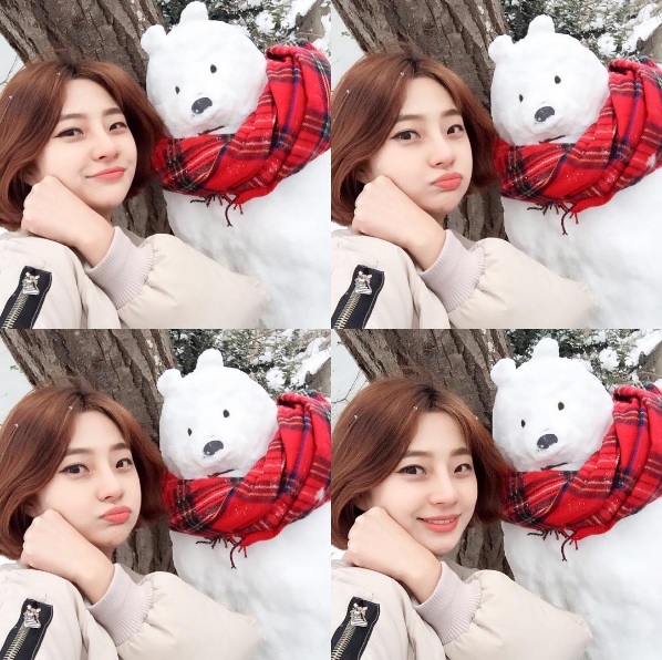 這張遠看還真的以為韓妞是在和哪一位(男友?)合照?怎麼圍上圍巾這麼有真實感,熊熊都擬人化了(為何覺得Ice Bear也有看鏡頭)
