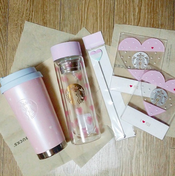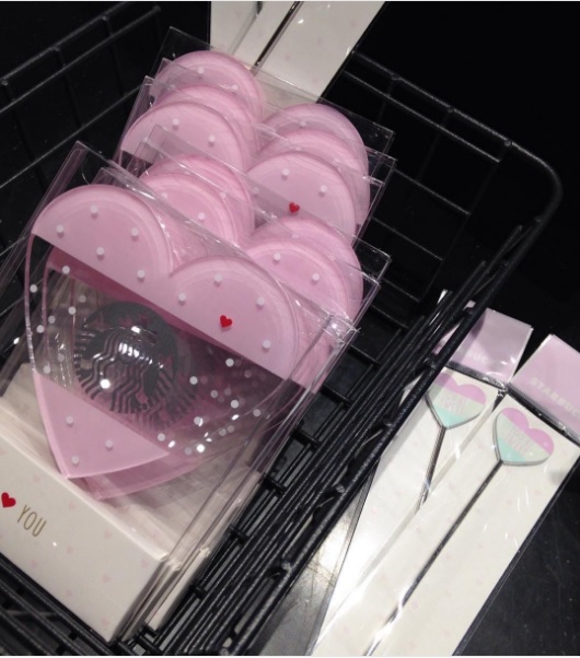 除了隨身瓶之外,韓國星巴克還出了一系列「充滿愛心」的商品,例如:愛心玻璃罐、愛心杯墊、愛心攪拌棒,讓人有想包整組的衝動,就是要把你的荷包掏光光!