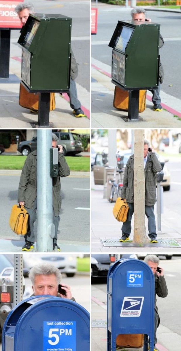 奧斯卡影帝達斯汀霍夫曼或許很會演戲,但如果要玩躲貓貓的話可能就不怎麼在行了...他躲成這個樣子是把大家當瞎子嗎?