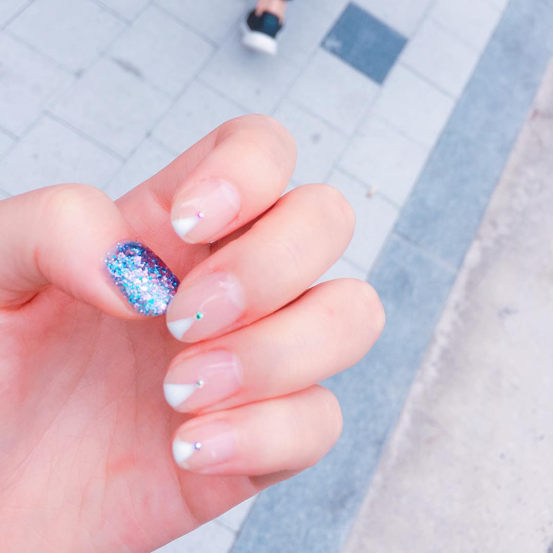 各種顏色的亮片指彩所做出來的效果充滿少女心!這邊提醒妞妞們在塗完三角區塊之後,別忘了再上一層透明指甲油讓甲面更持久、更美觀喔~