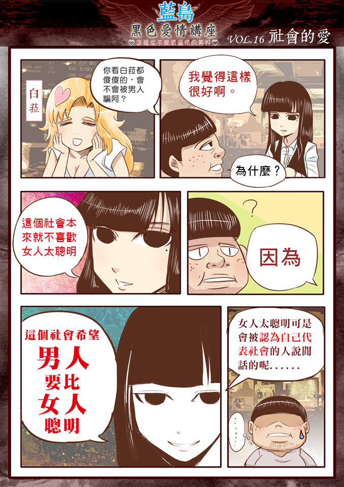 「更新方面,早期創作不會想太多,常常譁眾取寵,發洩情緒居多。現在比較會想了,也嘗試從比較多角度去看事情,但是在創作上就沒有這麼直覺了,有時會被粉絲說:『你不是藍島,你是誰?』這點讓我有點苦惱,因為我也是會喜歡別的東西的………此外,最開心的是每次我覺得很爛的作品,都能得到熱烈的迴響,常常讓我有不如轉行的快感。還有開一個新系列時也很開心,雖然我每次都爛尾。」(誒)