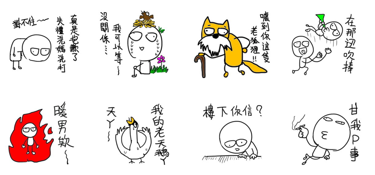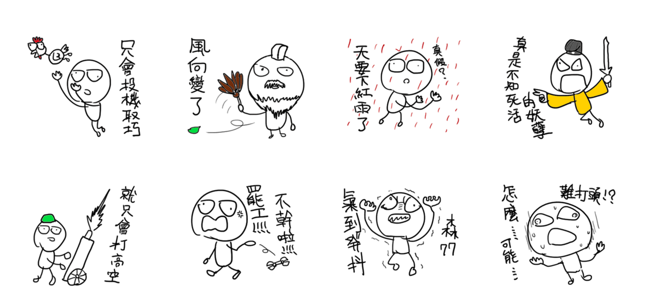 嗆人的口白依然威力不減,果然是針對那些「我和你沒啥好說的」朋友,不管是「只會投機取巧」的他們,「就只會打高空」的他們,還是就只會把我們「氣到發抖」的他們,就要用這款貼圖轟炸他們。(真是不知死活的妖孽)(納命來)