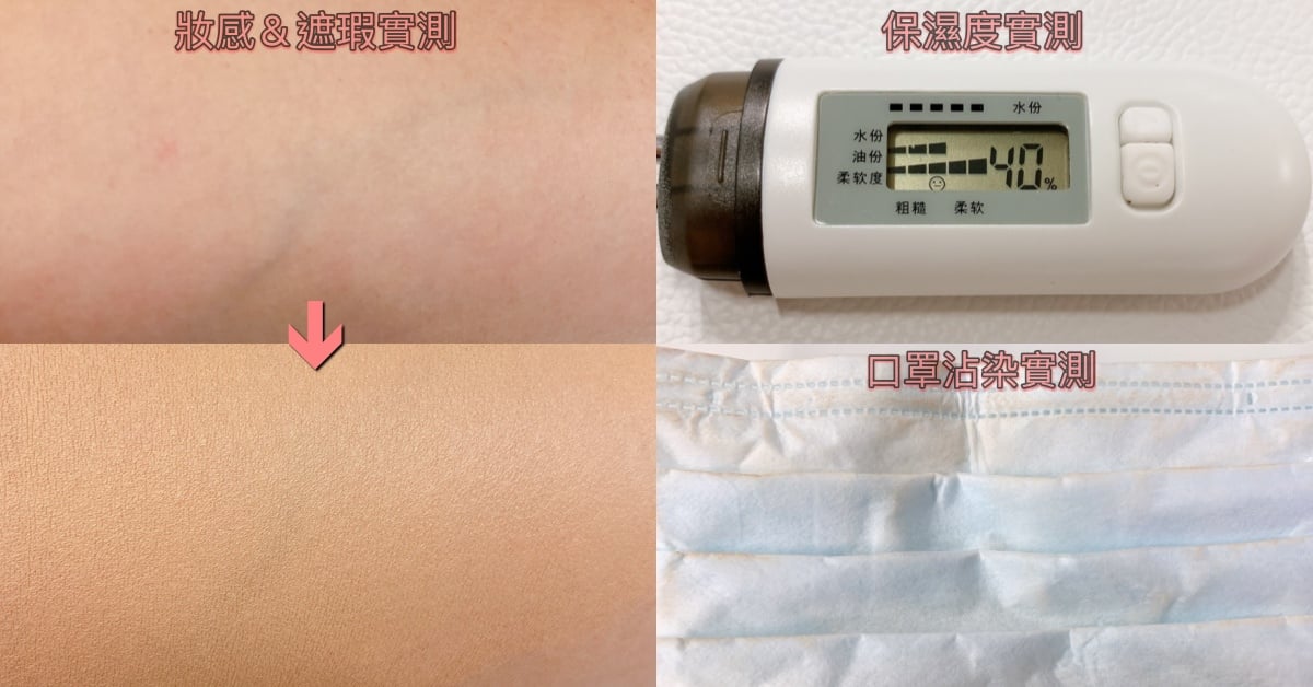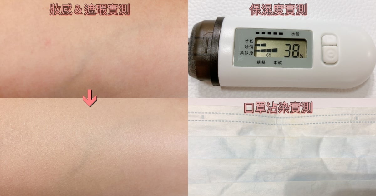 #保濕度實測:以專業儀器測量上妝5分鐘後的肌膚保濕度數值(水份、油份、柔軟度)。
