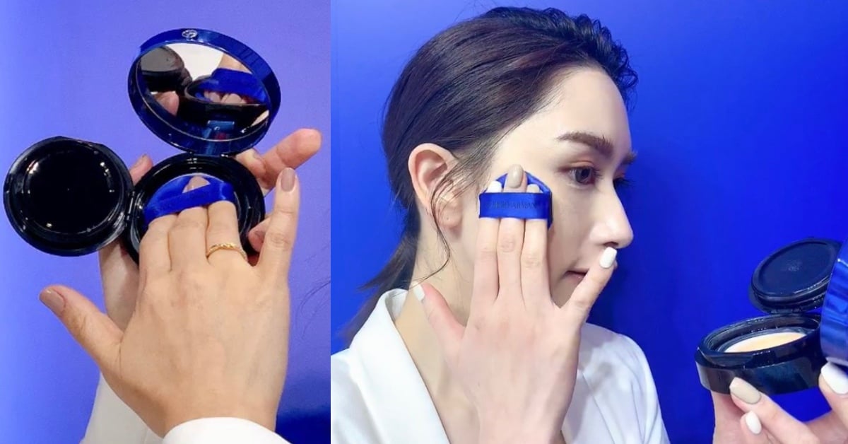不要心急想要一次壓滿壓好,少量多次的沾取,不夠再補,如果不小心壓太多也可先在手臂上調整一下粉量再上妝,妝感才不會太厚粉感或不均勻。另外,氣墊粉撲穿進緞帶的拿法建議3個手指頭會比2個手指頭來得穩定,沾粉和上妝也會比較平均,小範圍遮瑕就用2個指頭輕捏粉撲折角來輕壓修飾,就能精準又不厚重。