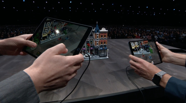 ARKit 2部分則新增了人臉追蹤與3D偵測功能,並支援多人共享實境(最多支援4人同時遊玩)。在WWDC的現場更示範搭配LEGO App,偵測支援LEGO AR的實體樂高建築後,雙人一起使用平板玩AR樂高遊戲的樣子。(看起來超有趣!而且這樣以後就不用組一大堆樂高了XD?!)