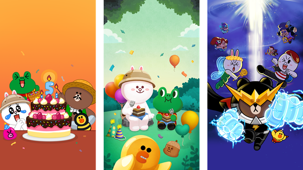 為了歡慶LINE GAME五週年所設計的桌布,LINE GAME召喚了《LINE 熊大農場》、《LINE Bubble 2》與《LINE Rangers銀河特攻隊》中的人氣角色同框,設計三款紀念桌布,鐵粉們一定要收集喔!於活動日期2017年11月22日至2017年11月30日,在LINE GAME官方帳號(id:@linegametw)中輸入正確關鍵字,就可下載該關鍵字所送的手機桌布,快來收集喔!(關鍵字提示:跟LINE GAME五週年生日快樂有關)
