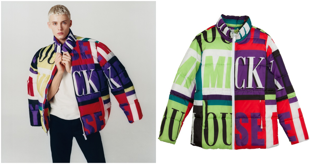 鮮豔的拼色就像漫畫的四格畫面一樣,保暖又可愛!Bershka Mickey男裝鋪棉外套