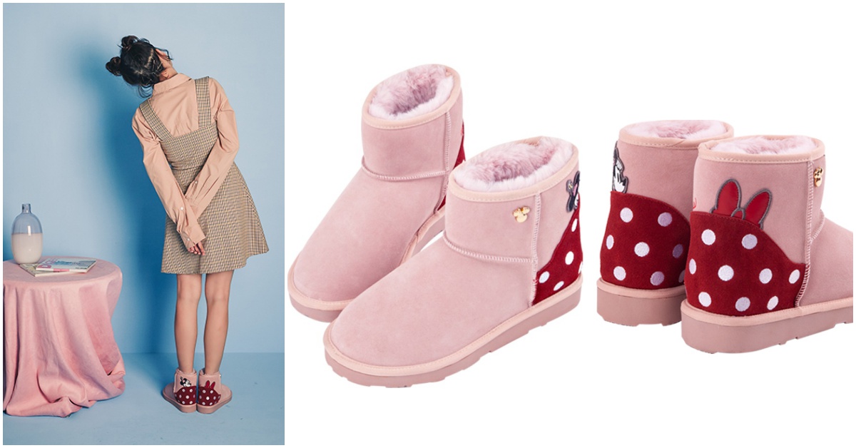 米妮點綴在腳後跟超萌的~超粉嫩色系搭配柔軟舒適的絨毛內裡,冬天穿起來保暖又甜美!