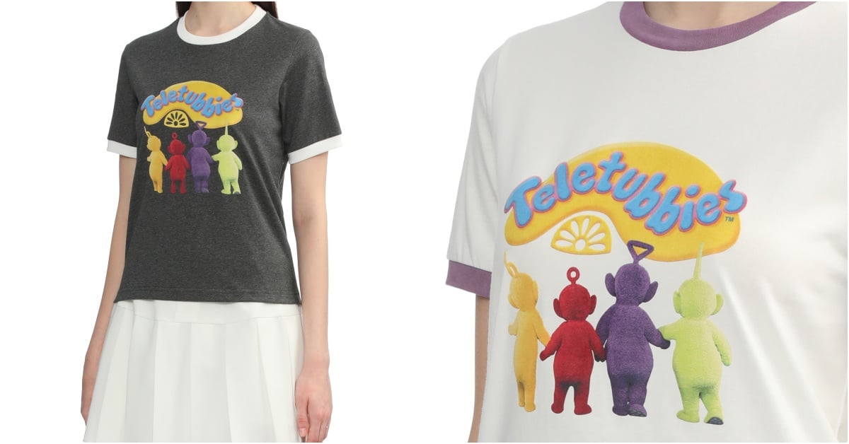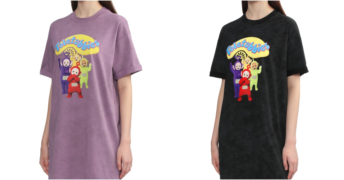 紫色天線寶寶丁丁、綠色天線寶寶迪西、黃色天線寶寶拉拉、紅色天線寶寶小波…想「一次集滿4隻」請收這2件!聯名T恤採用撞色滾邊設計,還原丁丁、迪西、拉拉、小波的背影,仿舊印花來自2000年代初期的復古風,另外一件聯名連身裙經過染色洗滌處理,大合照的可愛瞬間必須擁有的吧?