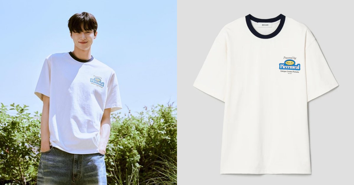 在邊佑錫宣布舉辦亞洲見面會的海報中,釋出這套清爽陽光的形象照,當中身穿韓國潮牌BEAKER的T恤也成了品牌的人氣熱銷款,以復古的美式圖案搭配滾邊設計,單穿或是搭在外套裡面展現層次感都是時髦程度滿分,妞妞們也可以搭配小白裙或迷你裙混搭成運動風格,都是時下很流行的休閒穿搭!