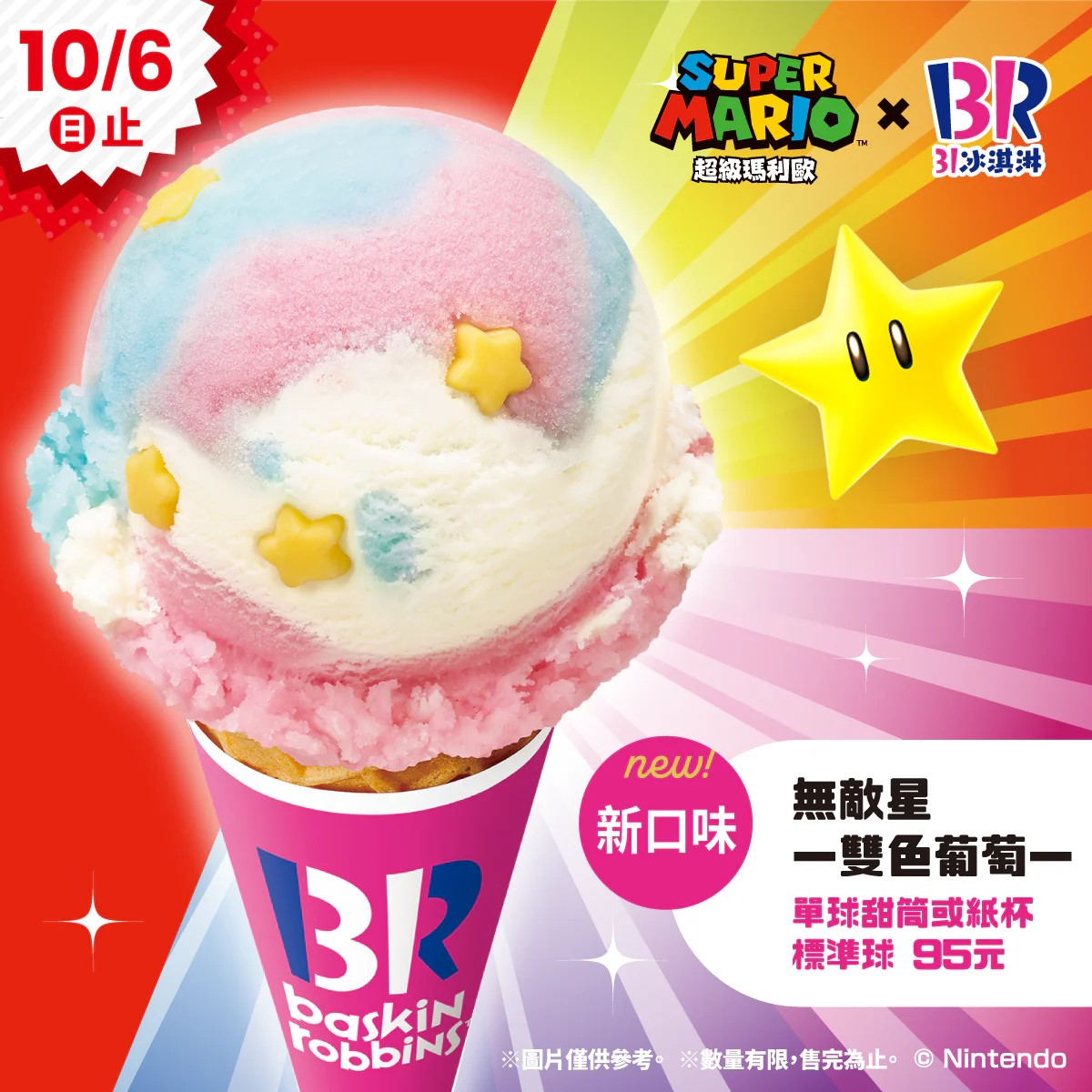 超級瑪利歐和無敵夏天來啦!「超級瑪利歐」聯名活動2024年8⽉22⽇(四)〜10⽉6(⽇) 超級瑪利歐、31冰淇淋、無敵星、冰淇淋蛋糕