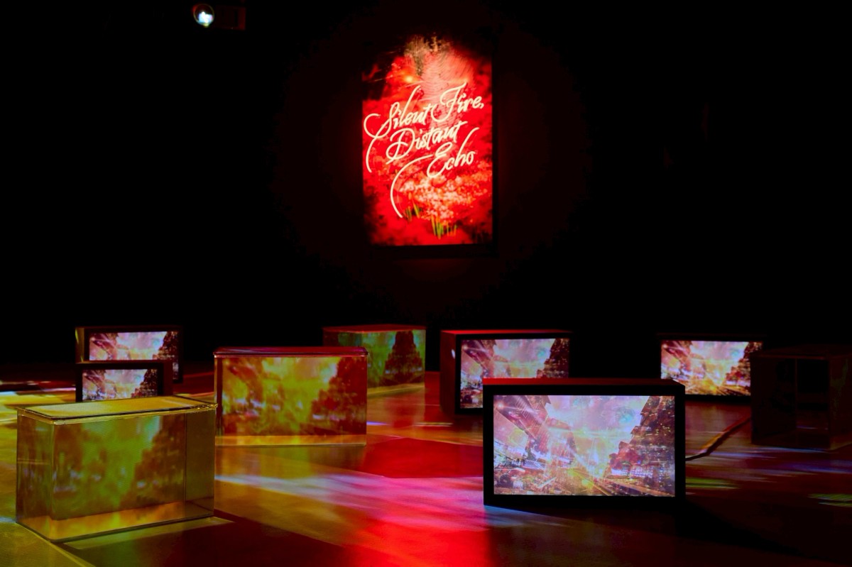 《與光影共舞》展區聚焦於壓倒性的光與濃密陰影之間,鋪陳出生命躍動與寂靜交錯的景象。整個展區以動態影像與平面作品交織呈現,細膩描繪了我們對生的渴望、與死共存及包容一切的「生命」本質。