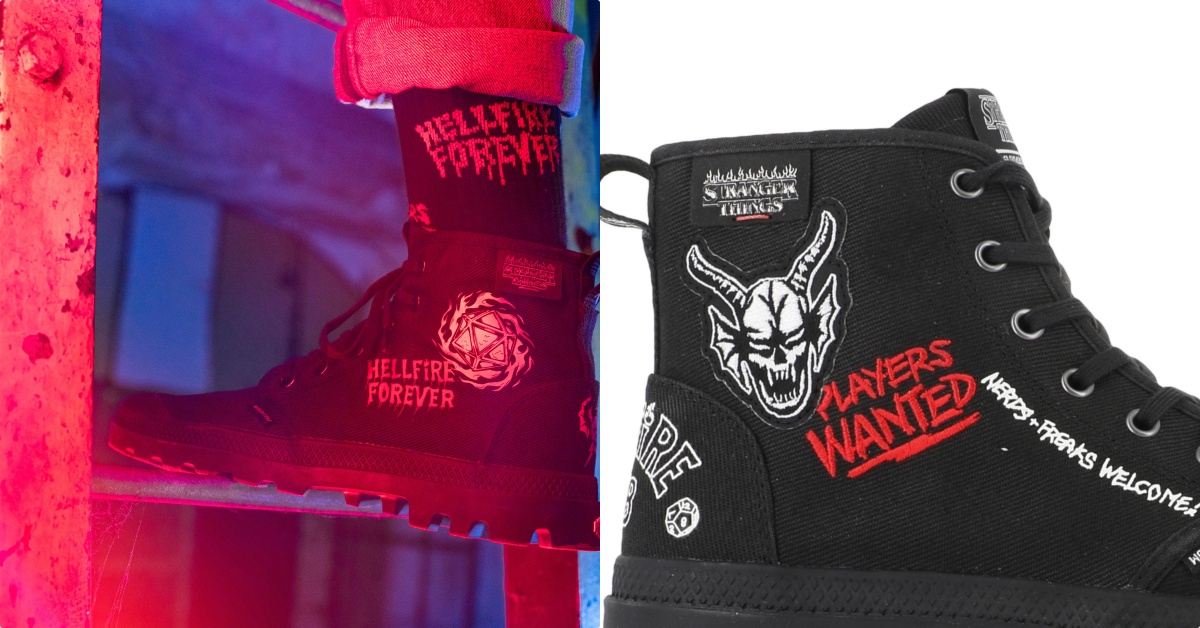 想加入達斯汀、邁克等主角群嗎?地獄火俱樂部號召會員中!PALLADIUM聯名《怪奇物語STRANGER THINGS》打造HELLFIRE地獄火系列版本的「經典法式軍靴PAMPA靴型」換上超酷全黑底色,鞋提吊飾與鞋側結合社團LOGO,桌遊《龍與地下城D&D》的流星錘與二十面骰也藏在細節裡,是不是超熱血?另一雙聯名靴則是在鞋面上,以荒涼仿舊塗層、灰燼塵土印花還原顛倒世界,鞋舌內側、內襯還能找到「怪物爪痕、異世界暗示」。