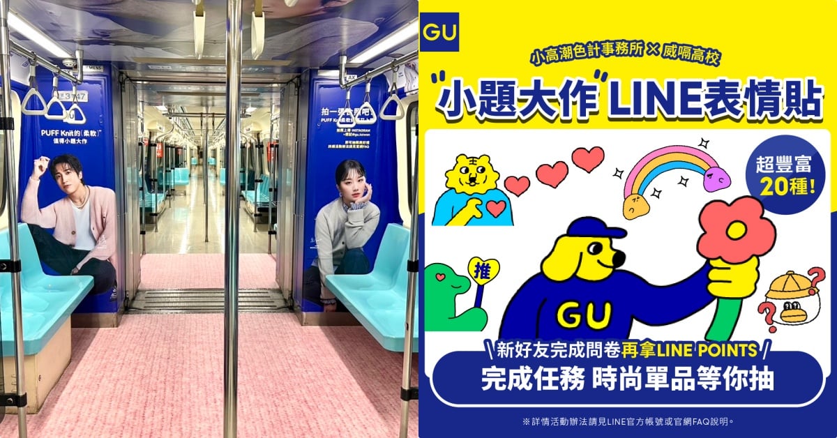 除了可以把飛天小女警帶回家,還有優惠好康別錯過!GU將於10月3日至16日舉行「雙10購物祭」,秋冬新品優惠最低只要NT.290,在10月28日還打造捷運板南線『柔的小題大作』主題列車,婁峻碩與焦凡凡CP化身列車視覺主角,只要於主題列車拍照打卡並完成指定任務,即有機會抽中同款針織外套或限量簽名拍立得,此外,GU也同步攜手超人氣插畫家小高潮色計事務所與威嗝高校,推出「小題大作」聯名 LINE 表情貼,10月29日前限時免費下載。完成任務還可參加抽獎活動喔~