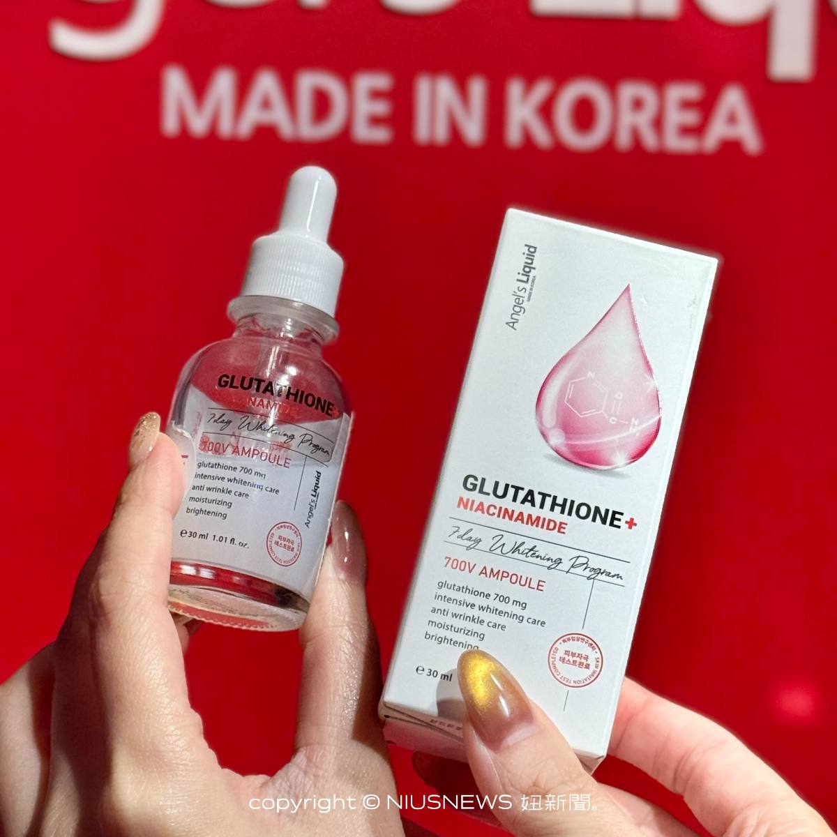 想要跟女神擁有同款!身為韓國保養品牌Angel’s Liquid代言人的裴智妍,這次在快閃店特別分享自己的「亮膚神器」,那就是品牌最受歡迎的「穀胱甘肽 700V 肌光安瓶精華」,內含超高濃度的穀胱甘肽,輕盈好吸收的質地,在肌膚上抹開稍加按摩就全部吸收,裴智妍透露隨身包包也必帶它,像這次來台在飛機上就有使用,台灣的妞妞們現在終於也能買得到。