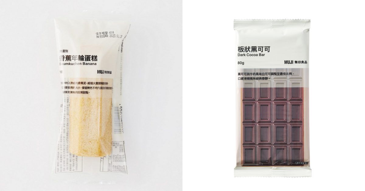 無印良品「無選別年輪蛋糕」一直是品牌的熱賣點心,保留烤色不均及形狀不規則的部分、小小一條當作下午茶或早餐都很合適,日本女生很流行將這款年輪蛋糕「加工」淋上各種口味的巧克力搭配Toppings裝飾,如紅茶年輪蛋糕就可以和「紅玉紅茶巧克力」搭配,吃起來茶香味更豐富,灑上將文旦柚與白柚皮以特製糖液浸漬後低溫乾燥的「柚子果乾」增添清爽感!