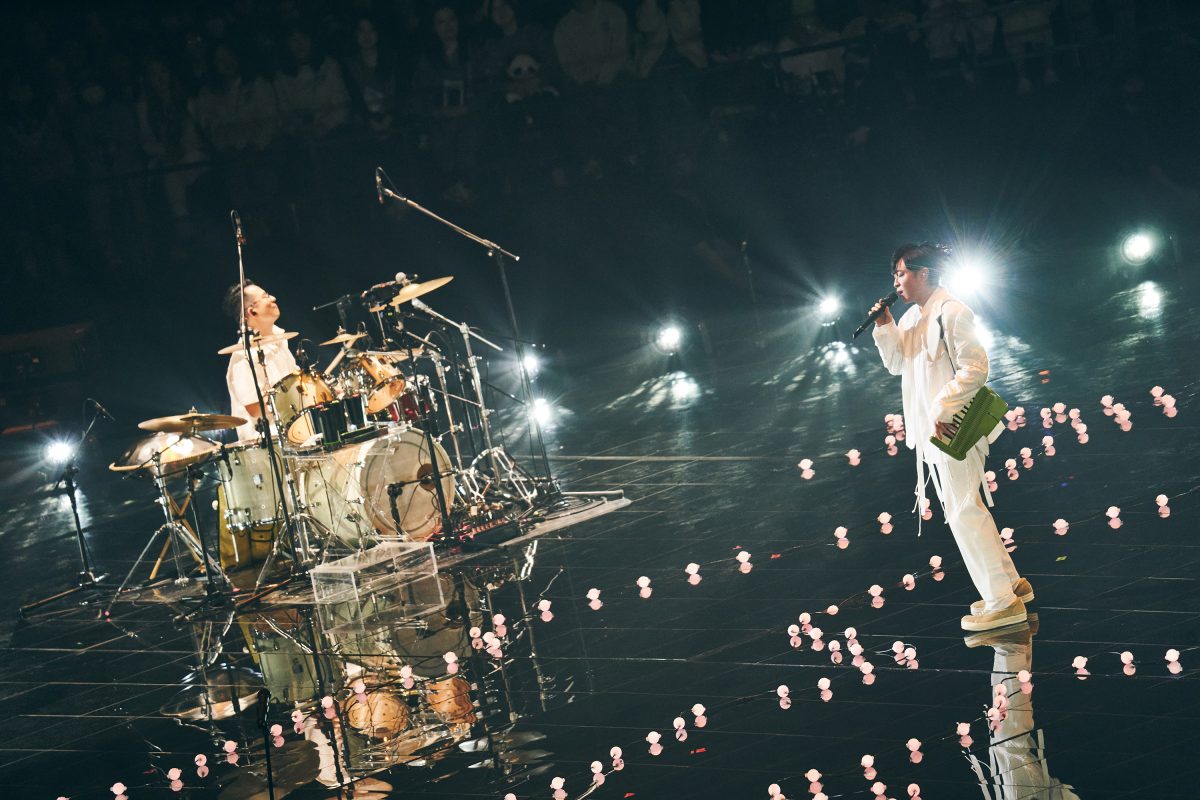 舞台設計還埋藏著「一起走過二十」的象徵巧思,兩道如「十」字的 X 形漂浮光廊構築天與地的交錯意象,而舞台上佇立的線桿則標誌著二十歲的重要里程碑,讓整場演唱會化作共同回憶流轉其中的時光寶盒。