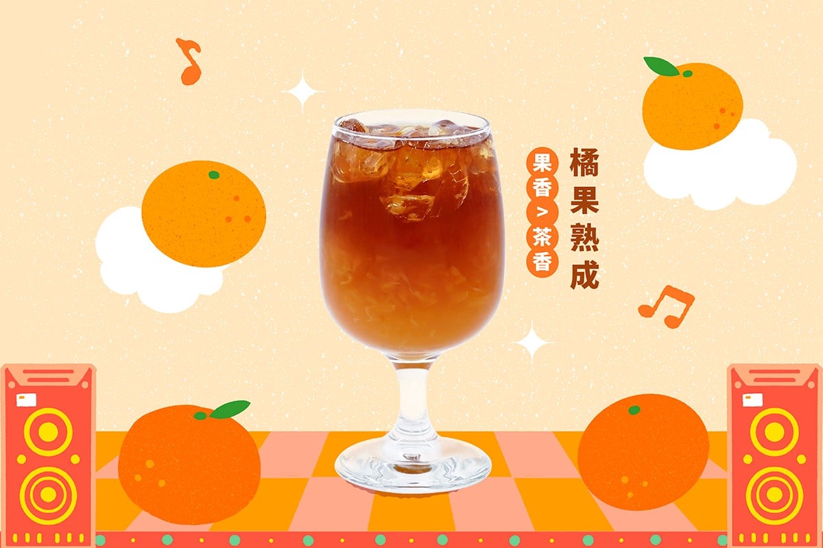 本次推出的「橘果熟成」選用台灣在地柑橘汁為基底,搭配可不可經典的熟成紅茶,酸甜果香與濃郁熟成茶韻完美融合,讓喝下的每口都能咀嚼到茂谷柑果粒。放到在陽光下更能透出的橙紅色澤,充滿著十足的新春喜氣。