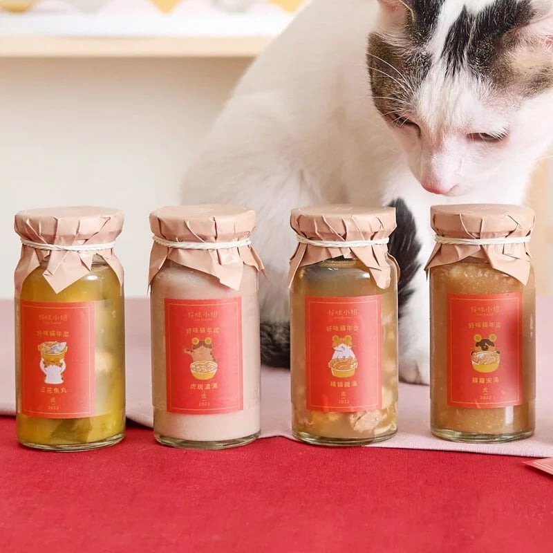 說到寵物鮮食怎麼可以少了「好味小姐」呢!他們照慣例推出了寵物年菜「2022好味貓年菜禮盒」,與其他品牌較為不同的是,他們研究了四道深獲貓咪喜愛的濃湯料理,分別是:以雞胸肉、雞腿肉、干貝組成的「橘貓雞湯」;鱸魚、白蝦、蟹腳肉熬煮的「三花魚丸」;旗魚、牛後腿肉、牛肝製成的「貓羅宋湯」&干貝、鬼頭刀、雞胸肉煮成的「虎斑濃湯」,把罐罐泡入熱水約五分鐘輕鬆上桌!(官網點我)