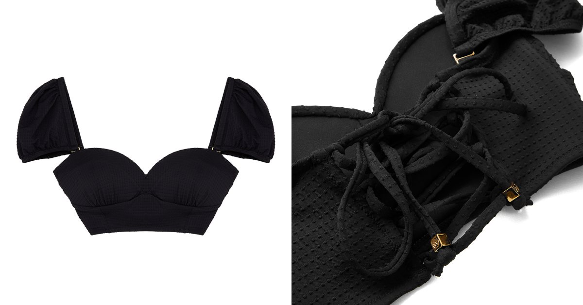 每年都會推出粉紅絲帶公益活動的用裝品牌WAVE SHINE,在今年以18世紀女性主義崛起的無畏精神為靈感,推出復古宮廷風格的馬甲比基尼,呼應10月乳癌防治月,泳裝以中世紀宮廷風格結合現代設計過,同時加入了可拆卸的甜美蓬袖設計,背後搭配自由調整的綁帶,可以完全貼合身型調整,不僅可以作為泳衣穿搭,還可以成為日常穿搭的造型單品喔!