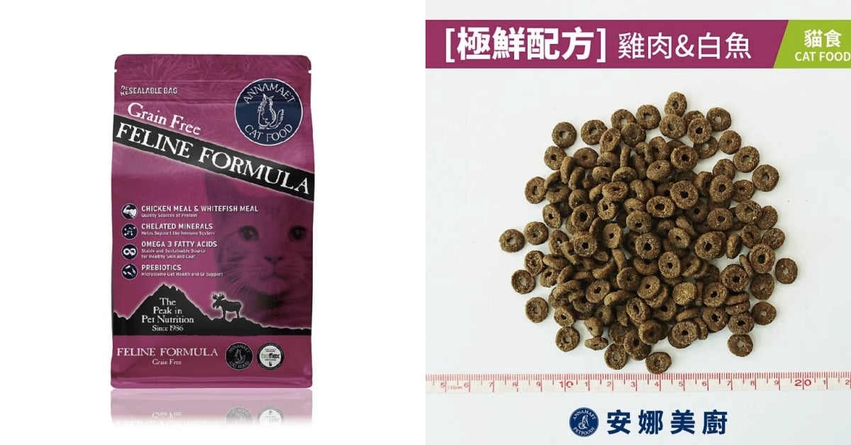 妞編輯評價:優質的台灣品牌先給個讚,此款貓飼料蛋白質的前四項是鮭魚、火雞肉、鯡魚以及鰹魚,因為魚含量蠻多的,適合挑嘴貓食用,此外維生素和礦物質也很豐富,成分表不僅十分詳細,還額外附上安全檢測認證,作為鏟屎官真的會比較放心!
