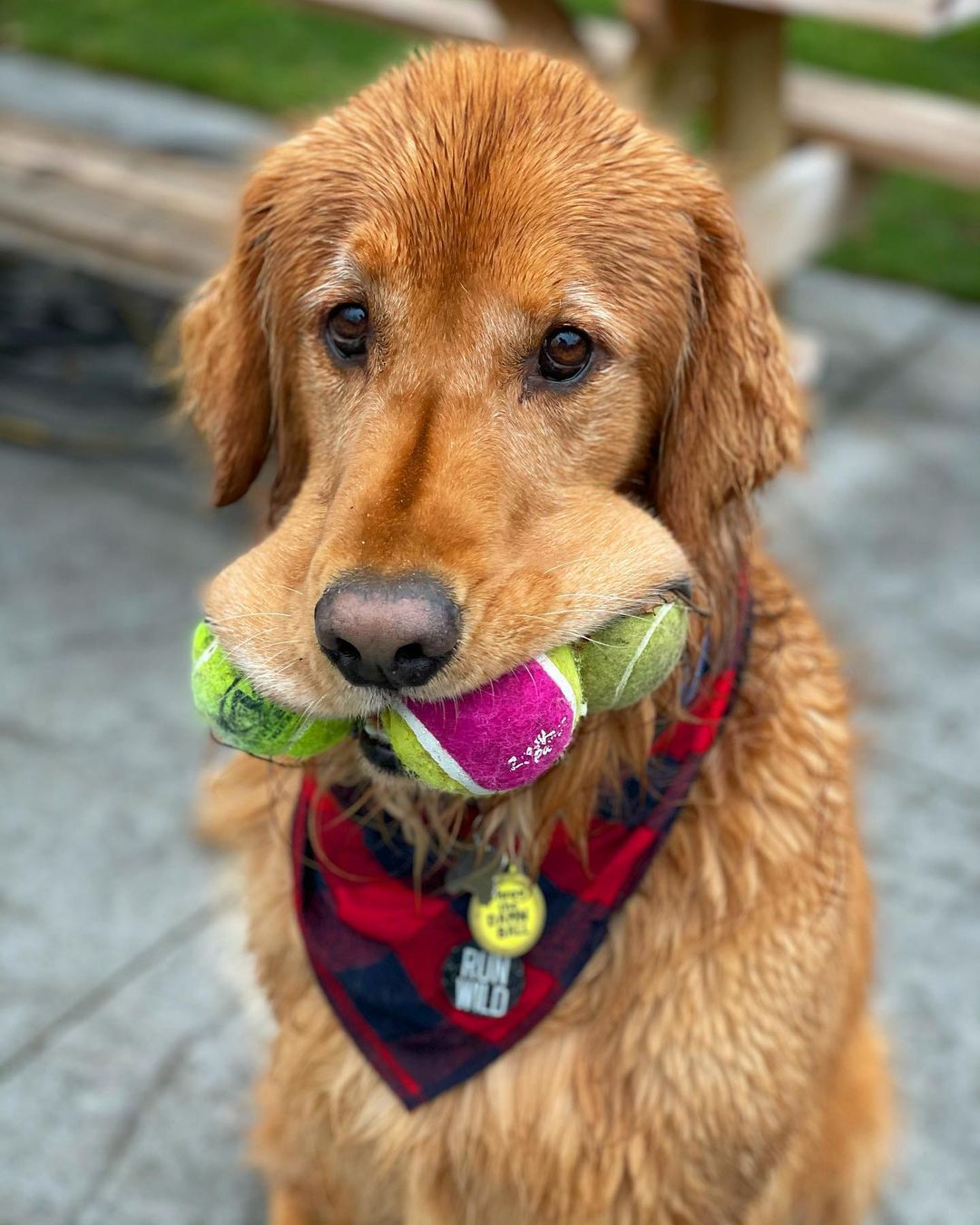 這隻來自紐約的黃金獵犬名叫「芬利」,牠最引以為傲的專長就是「叼網球」,芬利可以同時用嘴巴含著6顆網球,而這個令人印象深刻的壯舉,在2020年還榮獲金氏世界紀錄:「most tennis balls held in the mouth by a dog!」(同時含著最多顆網球的狗狗)