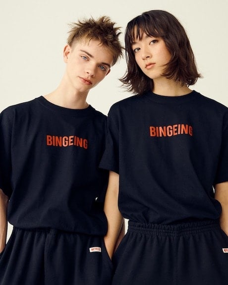 NETFLIX有不少作品都是一次上架全集,也害很多人常常熬夜(找藉口?),如果追劇的時候不想被打擾,也可以穿上「BINGEING」的款式,代表一口氣看完的意思,展示決心,絕對不停下來!