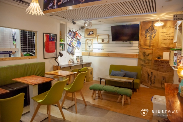 24磅咖啡羽球總坪數約為30坪左右,一半是羽球用品店,一半是烘焙咖啡店,整體色系以柔和白為主,並搭配木質調的淺色木頭和麻布袋等元素進行妝點,特別之處在於不logo和包裝上可見老闆最愛的綠色隱藏在其中,咖啡店提供座位區和吧台兩個區域,不管大家是想獨飲或小聚皆可在此處找到屬於你的小天地!