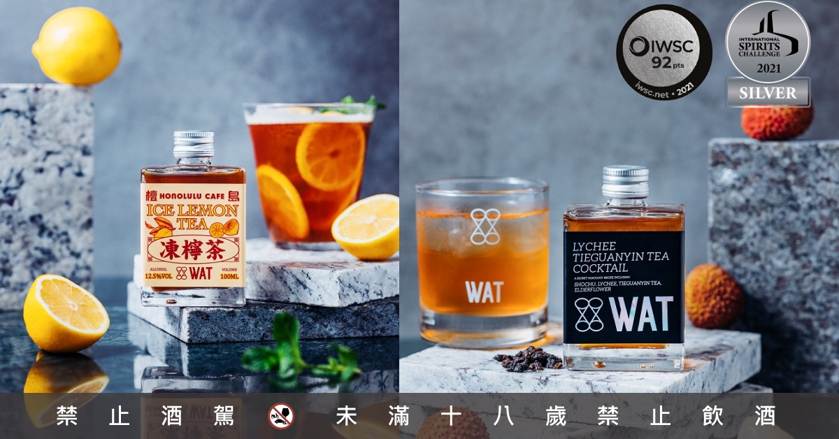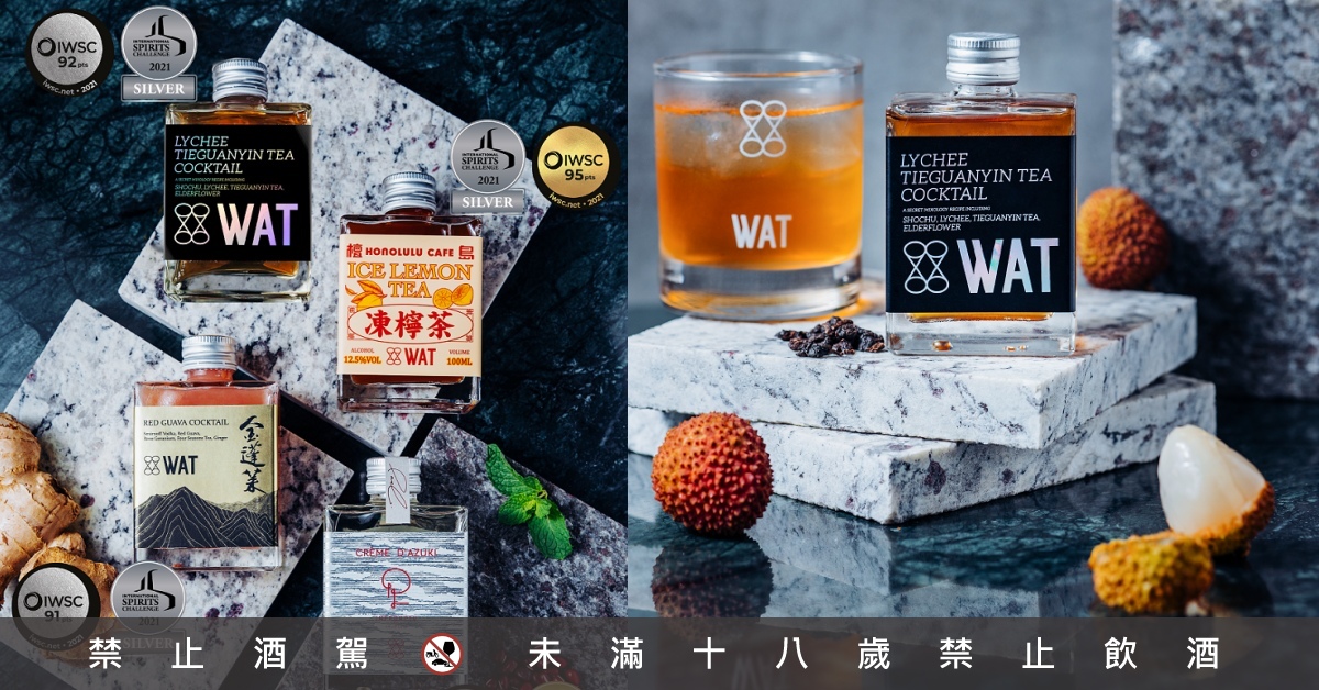 獲得ISC金牌、IWSC銀牌殊榮的「大人味的紅豆奶油捲雞尾酒」,是WAT在2020年與米其林一星餐廳IMPROMPTU聯手研發推出。這款以紅豆點出前段風味,中段潛藏泥煤滋味,並逐漸湧上煙燻、烏梅與巧克力,再透過耗時耗心力的澄清工法去除雜質與澀感,才能將現調雞尾酒的滑順口感的完美呈現並且裝瓶。本款酒品也是6款得獎作品中製程最複雜細緻的一款雞尾酒。暢銷酒款「檀島凍檸茶雞尾酒」首次出賽就拿下IWSC金牌以及ISC銀牌!以正港「撞」「焗」手法沖煮錫蘭紅茶,加入現切檸檬的清新香氣,佐以白蘭地增添微醺感。另外也是消費者喝過一次就會不斷回購的「WAT 紅心芭樂雞尾酒」和「貴妃鐵觀音雞尾酒」則雙雙獲得兩項國際競賽的銀牌獎,「WAT 紅心芭樂雞尾酒」是以台灣人吃桌菜必備的芭樂汁為發想,和米其林一星餐廳金蓬萊聯名推出,除了運用玫瑰天竺葵與生薑增加層次、凸顯菜色中的辛香配料,同時加入四季春茶達到解膩效果,適合配上炸、烤等手法的重口味台菜;「貴妃鐵觀音雞尾酒」保留貴妃荔枝的果肉滋味,混合鐵觀音特有煙燻木質香氣,在圓潤茶韻之中品嘗柔軟甜美。