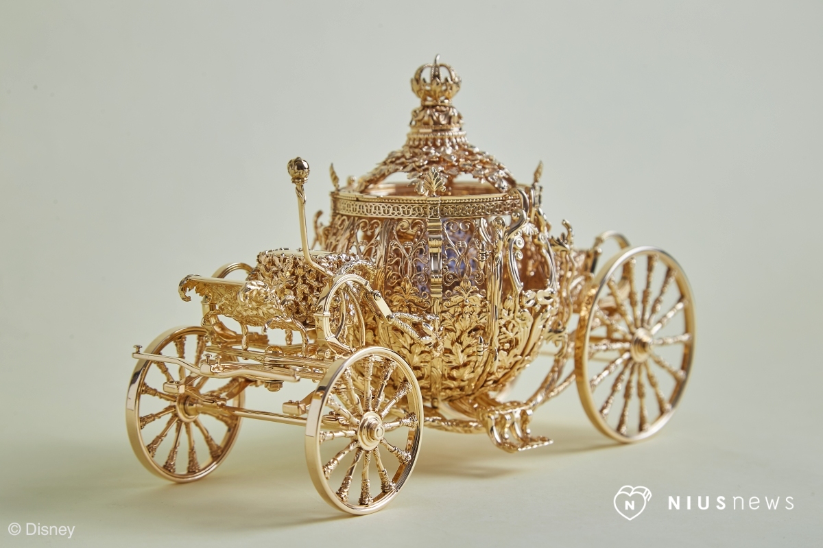 馬車全長約16cm,由100個以上的18K金零件組合而成,細節感滿滿,做工極其精緻,完美體現工匠精神。為了完美呈現南瓜馬車,就連光照射在裝飾上的視覺效果、立體感及影子的投射都經過計算,華麗的迷人樣貌就像是從電影的世界中駛出來一般!!!(這絕對需要親眼朝聖)